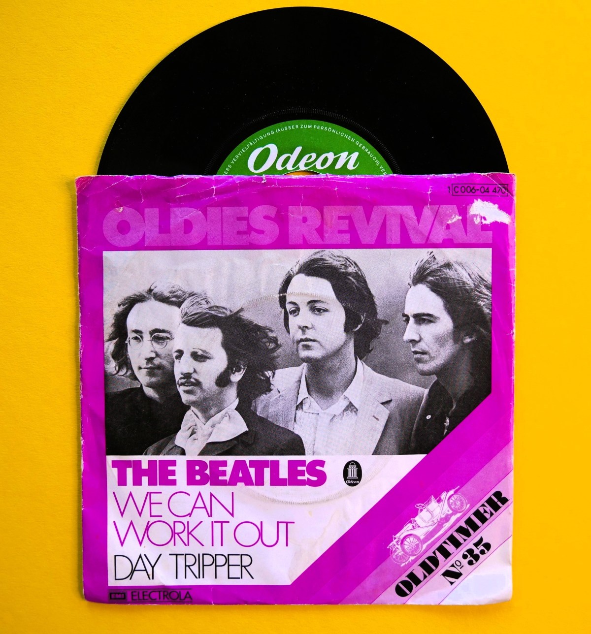 Back in the days when recording artists released singles, “We Can Work It Out” made its debut in 1965. The Beatle’s manager, Brian Epstein, felt that the other song on the record, “Day Tripper,” was more commercial and so, should be the lead song. Typically, the lead song of a single is recorded on the top side (A side) and the other song (B side) goes beneath it. Since both songs became hits, the record turned out to be the first double “A” single ever recorded.